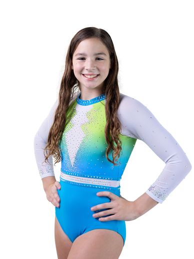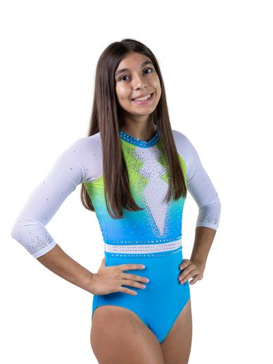 Completed level 8 last season. She is 14 years old and in the 9th grade. She started out tumbling at age six before beginning gymnastics five years ago. Her favorite color is light blue. She loves tacos and can always be heard cheering her teammates on during practice. She stays motivated by reviewing her progress over the years.